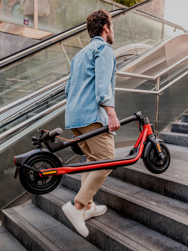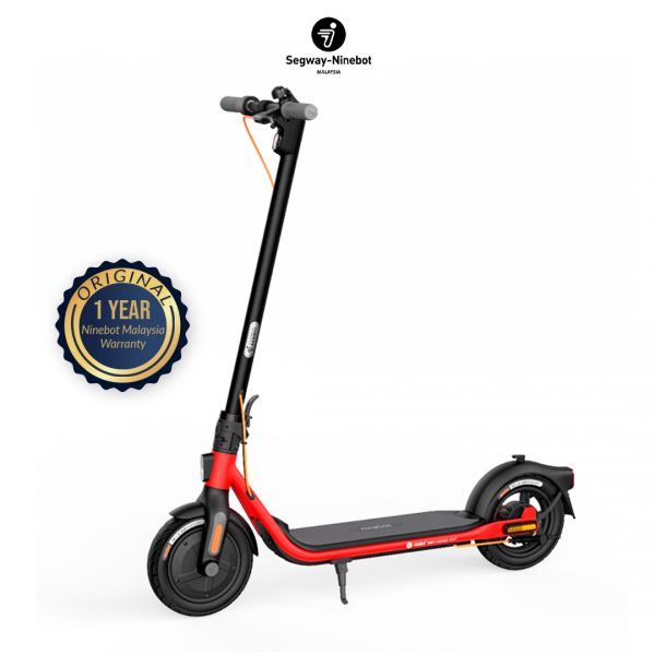 The New Ninebot KickScooters D28E is here. This model comes with a fiery design, with bright red footboards that will surely catch your attention. The D28E series comes with 10-inch large air tyres with an inner tube that offer you both comfort and a smooth ride. With range of up to 28km, D28E will be your new way of moving with a speed of up to 25 km/h.